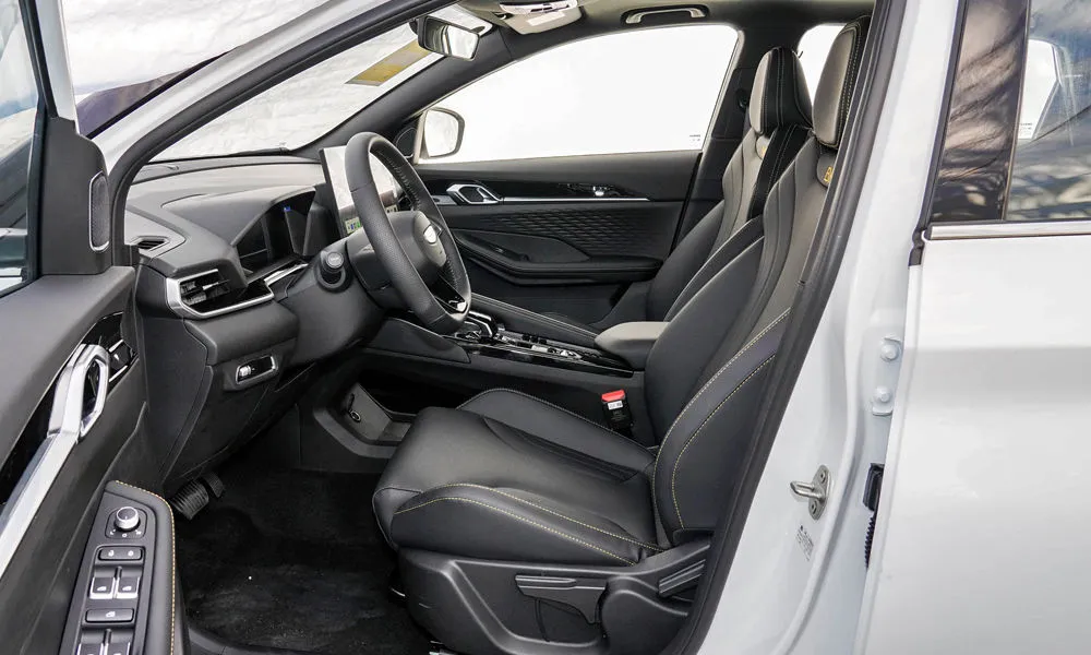 - Отделка интерьера и сидений экокожей чёрного цвета с контрастной строчкой красного цвета